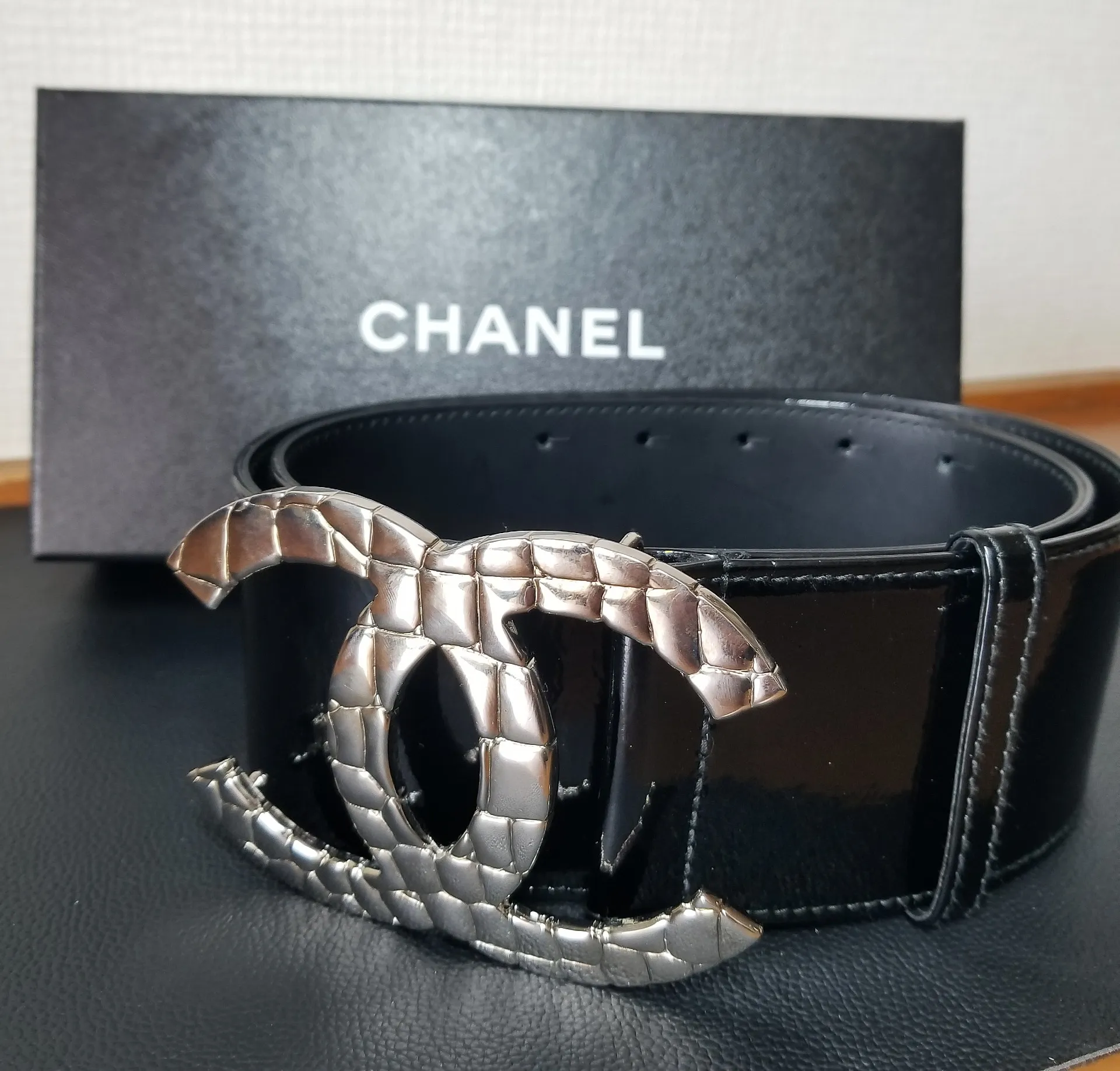 花巻市のお客様より CHANEL デカココマーク エナメル ベルトを出張買取りさせていただきました。
